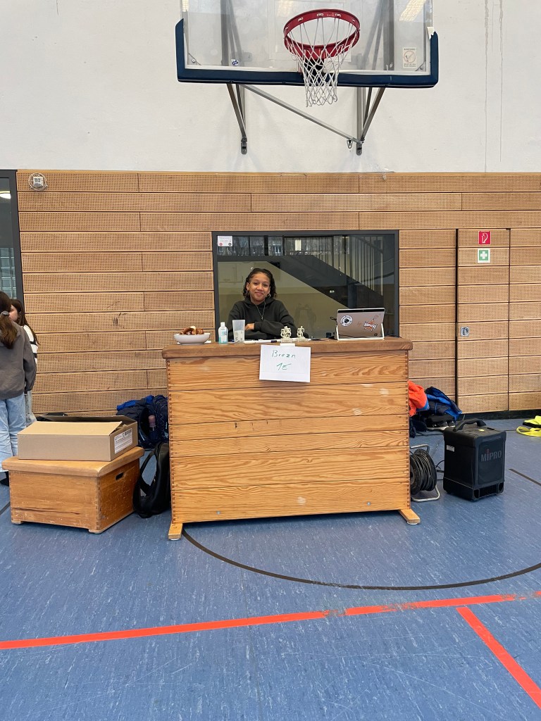 Kaan Altaylar aus der Klasse 10a und unser Schulsprecher Ryan Abu fungierten als Schiedsrichter und pfiffen die Spiele sehr professionell. Unsere Schulsprecherin Alina O´Bryant half Herrn Giefer bei der Organisation des Turniers.