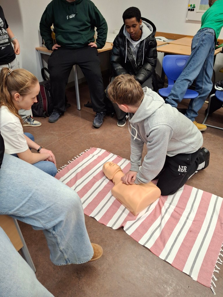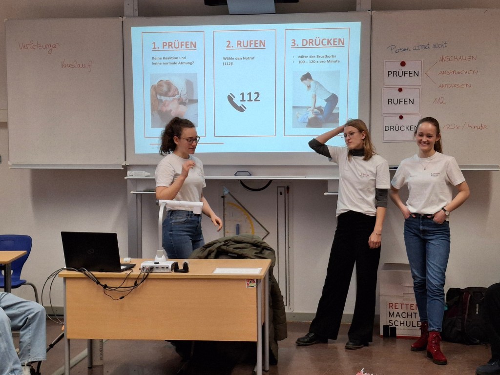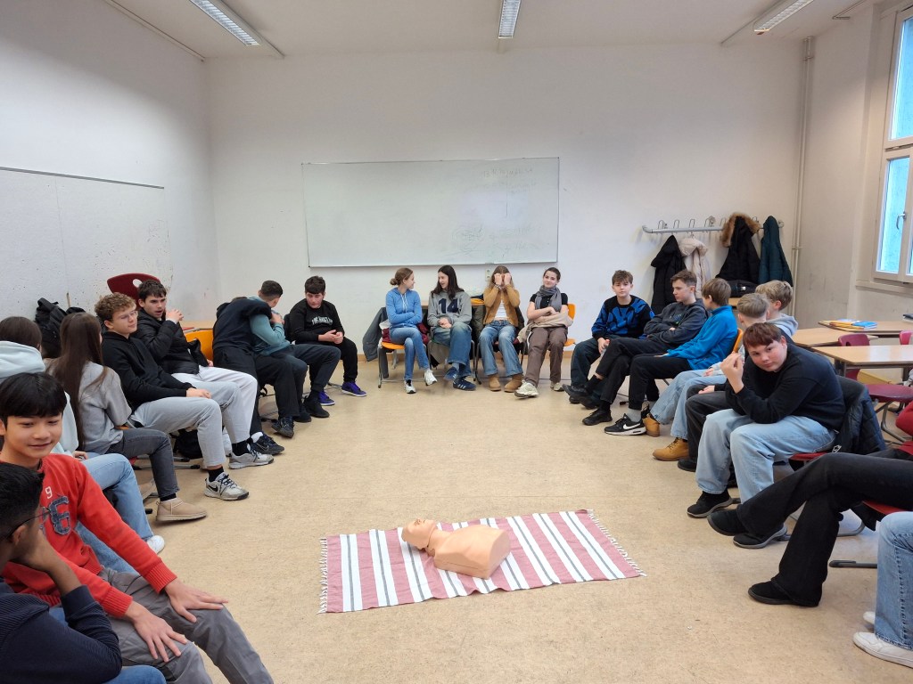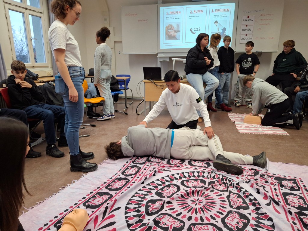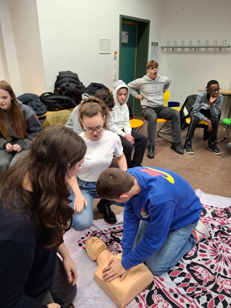Es ging um das Leisten der Ersten Hilfe in Notsituationen. Gerade wenn jemand ohnmächtig wird und die Atmung oder der Herzschlag aussetzt, zählen die Minuten, um das Leben des Menschen zu retten.