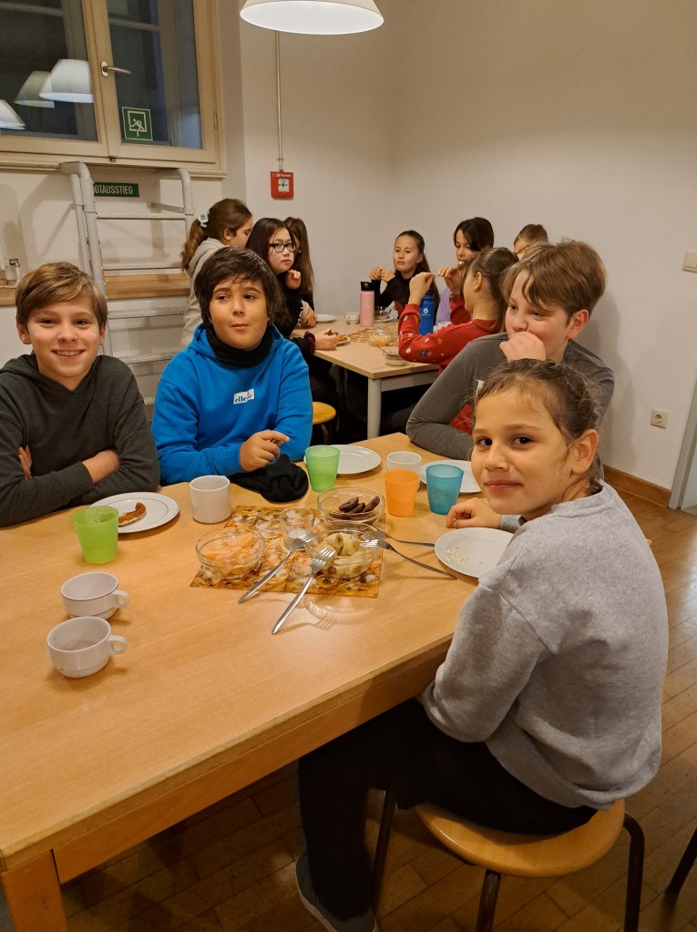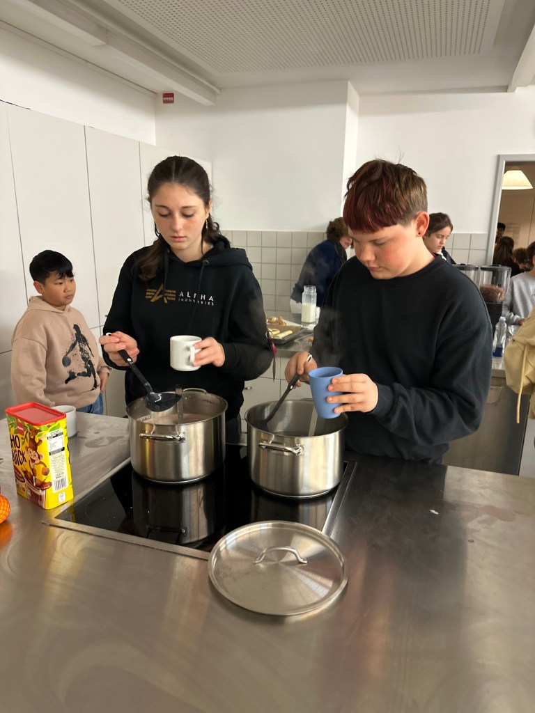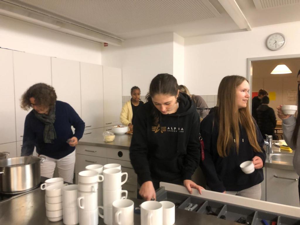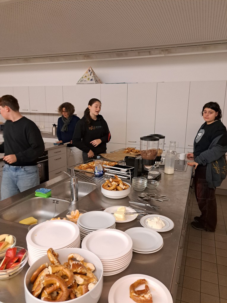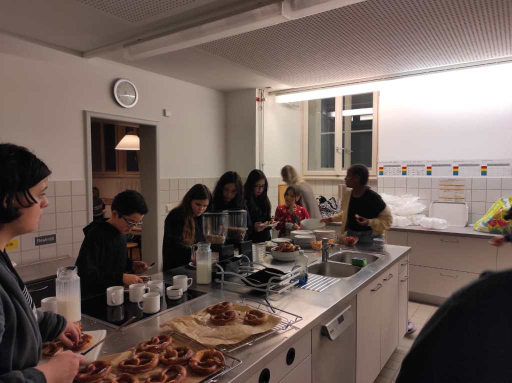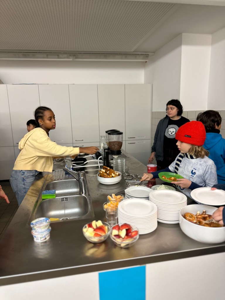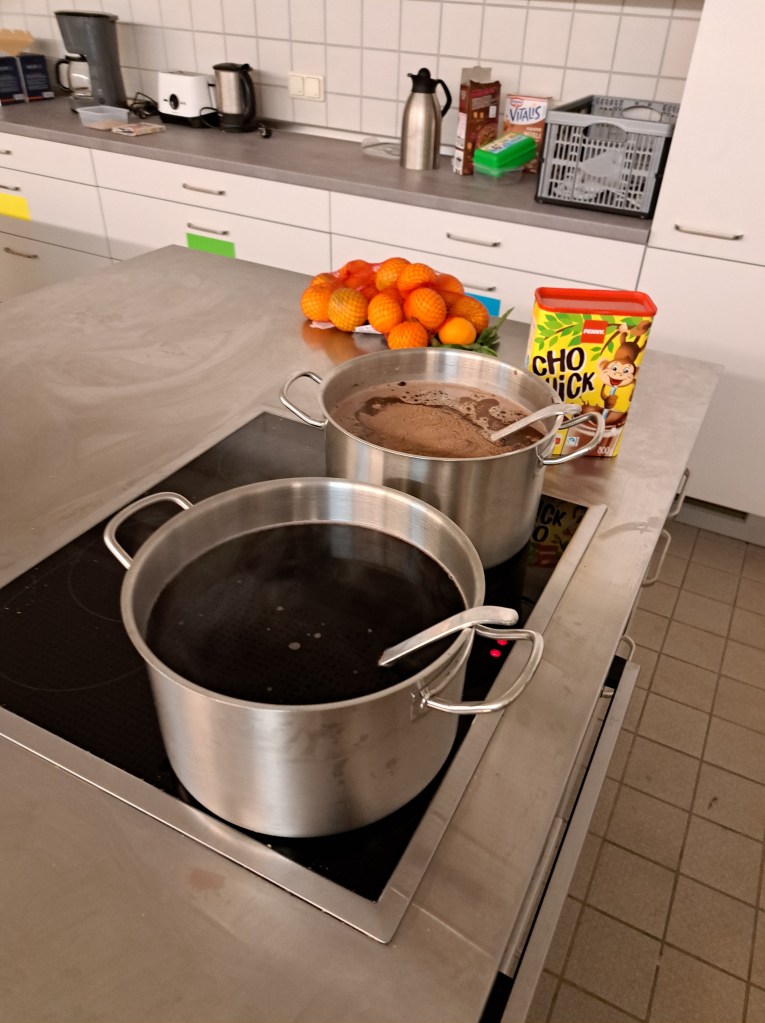 Viele helfende Hände waren nötig, um den großen Andrang in der Küche zu bewältigen. Neben Kakao und Punsch gab es Müsli, Brez`n sowie frisches Obst.