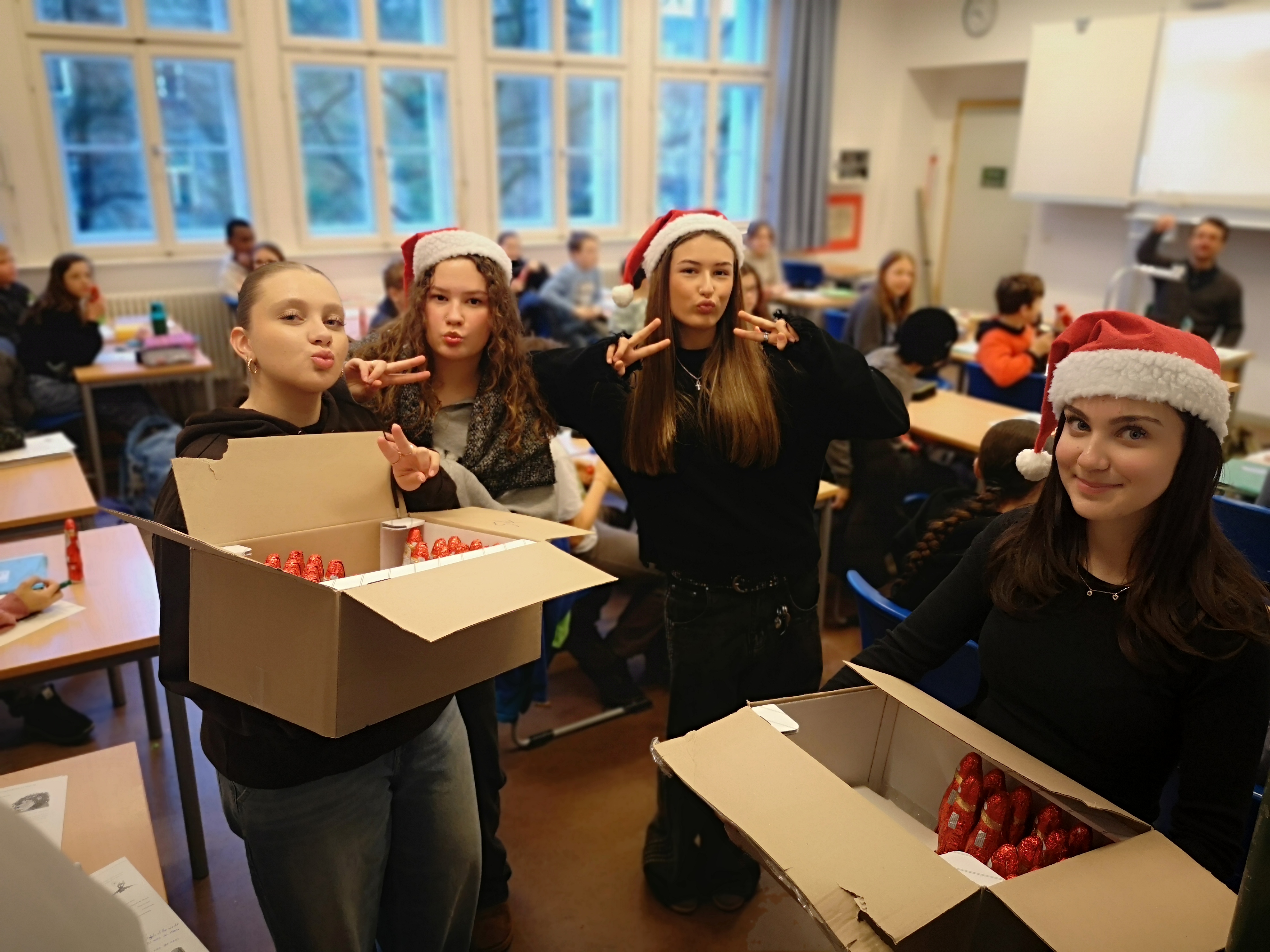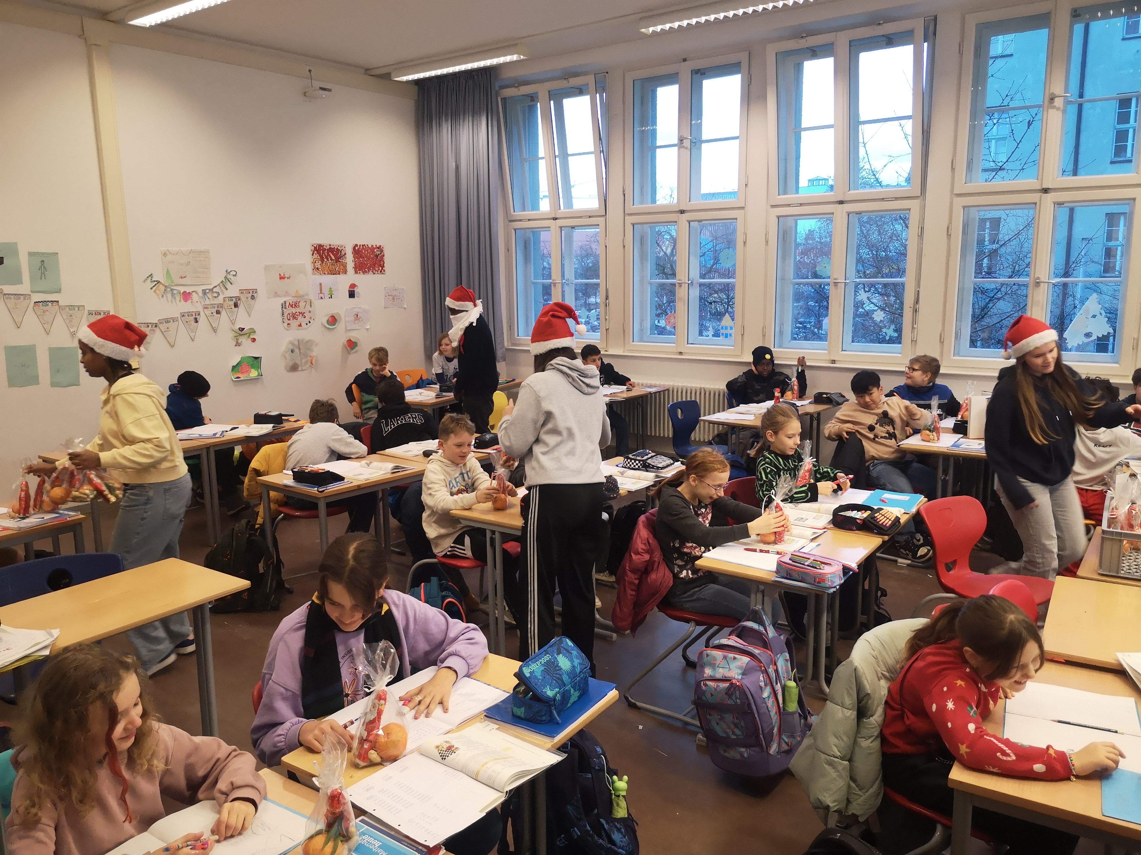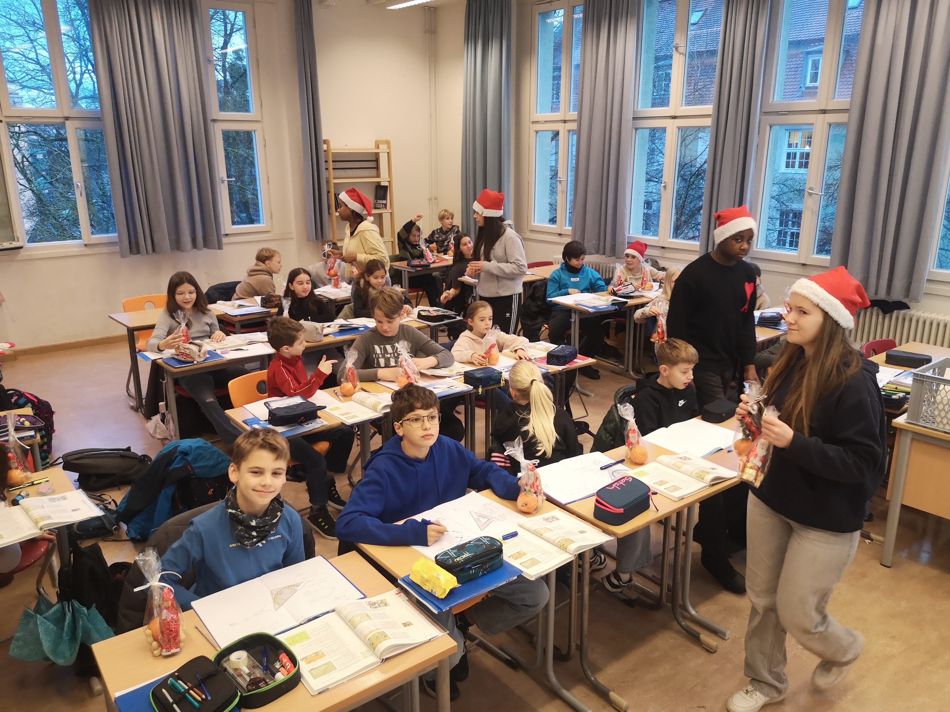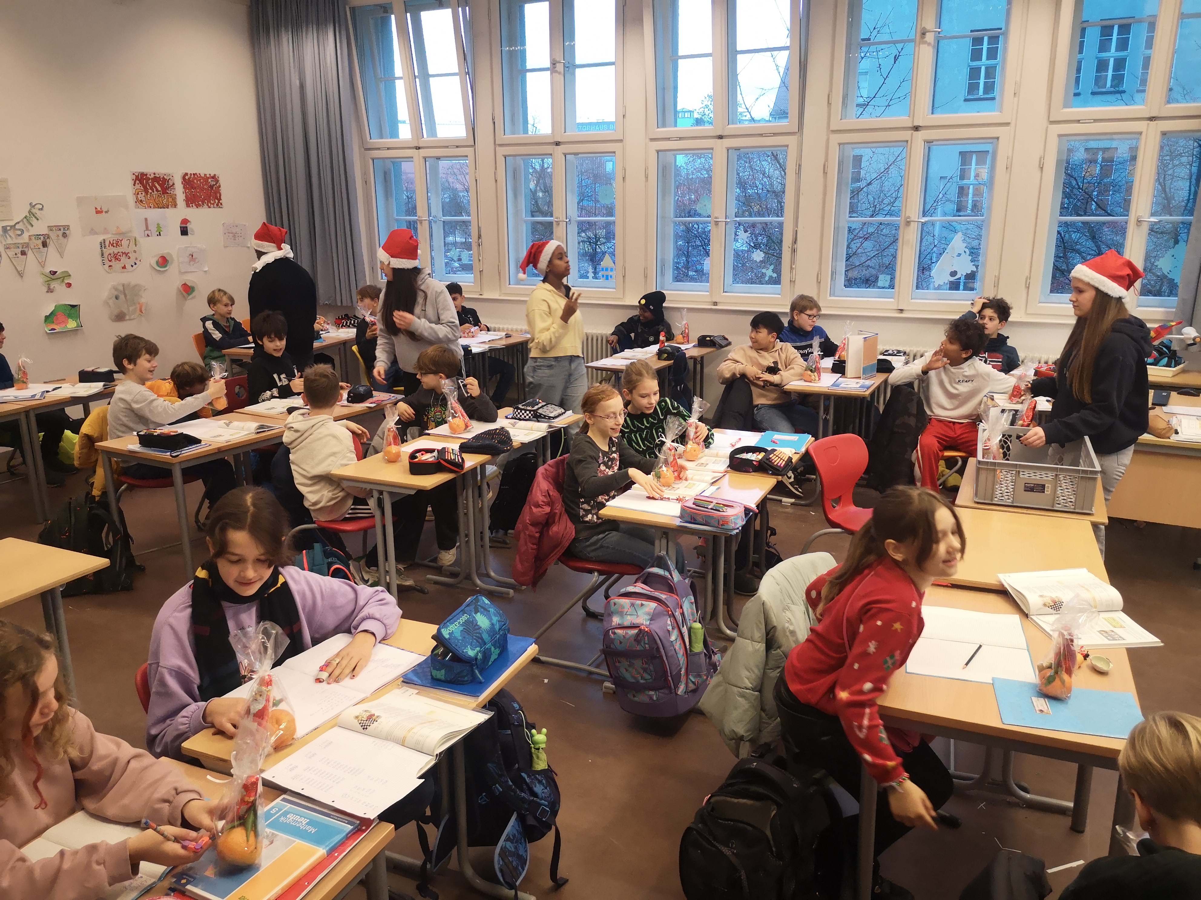 Anschließend halfen die Tutoren dem Nikolaus, Herrn Weichselgartner, beim Verteilen von schokoladigen Männern in den einzelnen Klassen. Vielen Dank an den Elternbeirat für diese „süße“ Spende und auch den Mitgliedern der SMV.
