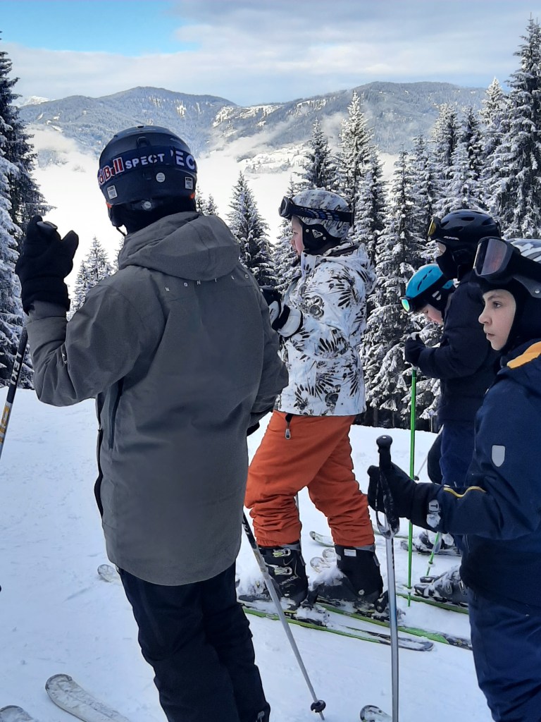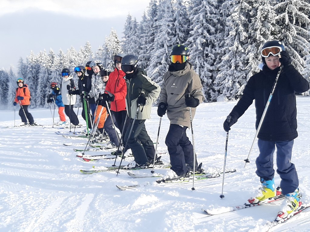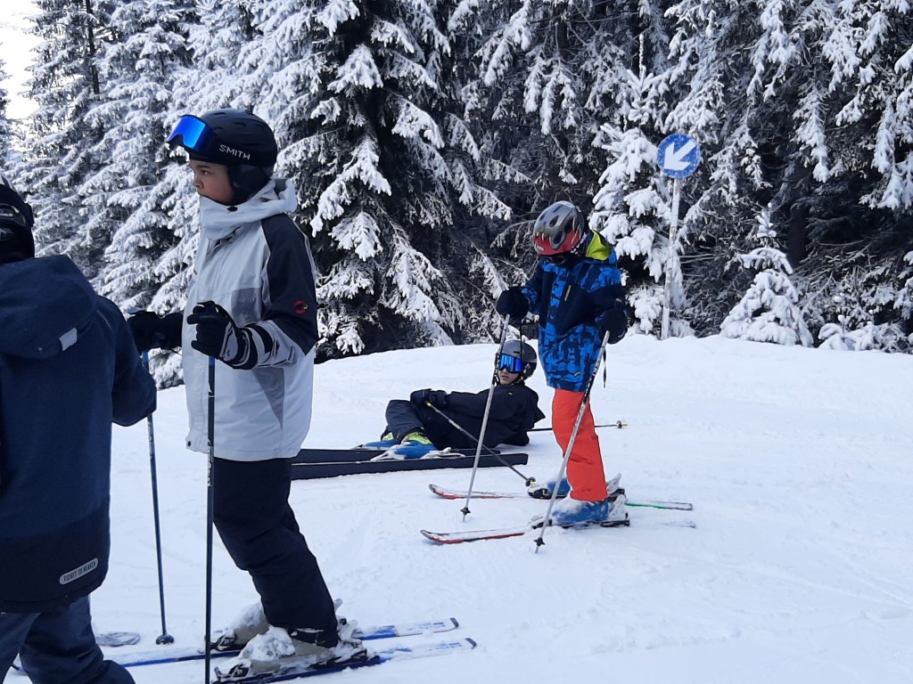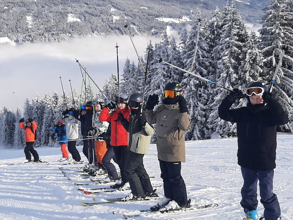 In der traumhaften Winterlandschaft angekommen, wurden die Zimmer bezogen und dann das Skiequipment ausgeliehen. Anschließend erfolgte die Einteilung der Schülerinnen und Schüler in verschiedene Gruppen. Viele gehörten zu den Anfängern und lernten das Skifahren von der Pike auf, andere verbesserten ihre Fahrleistungen in den Gruppen für Fortgeschrittene.