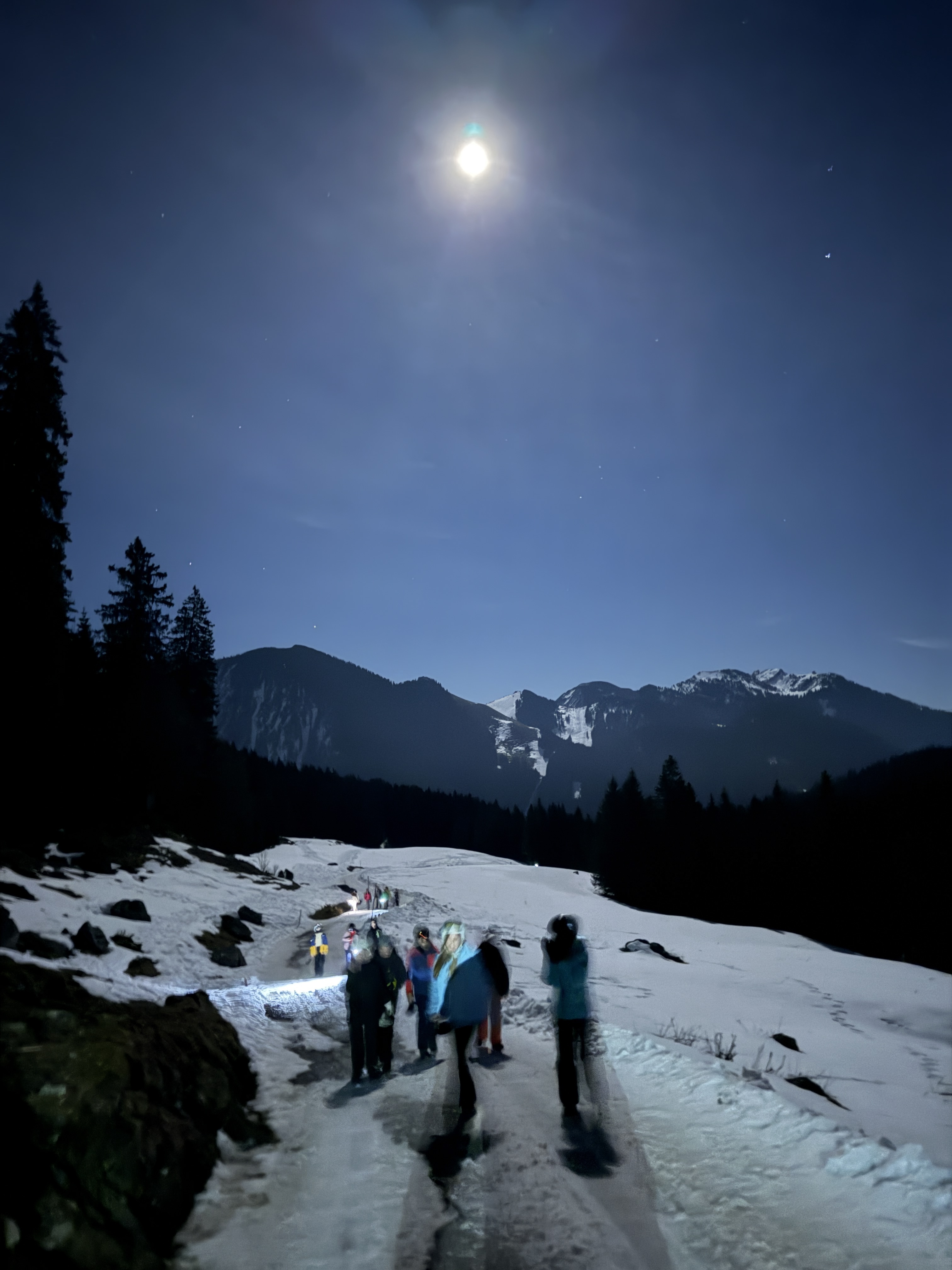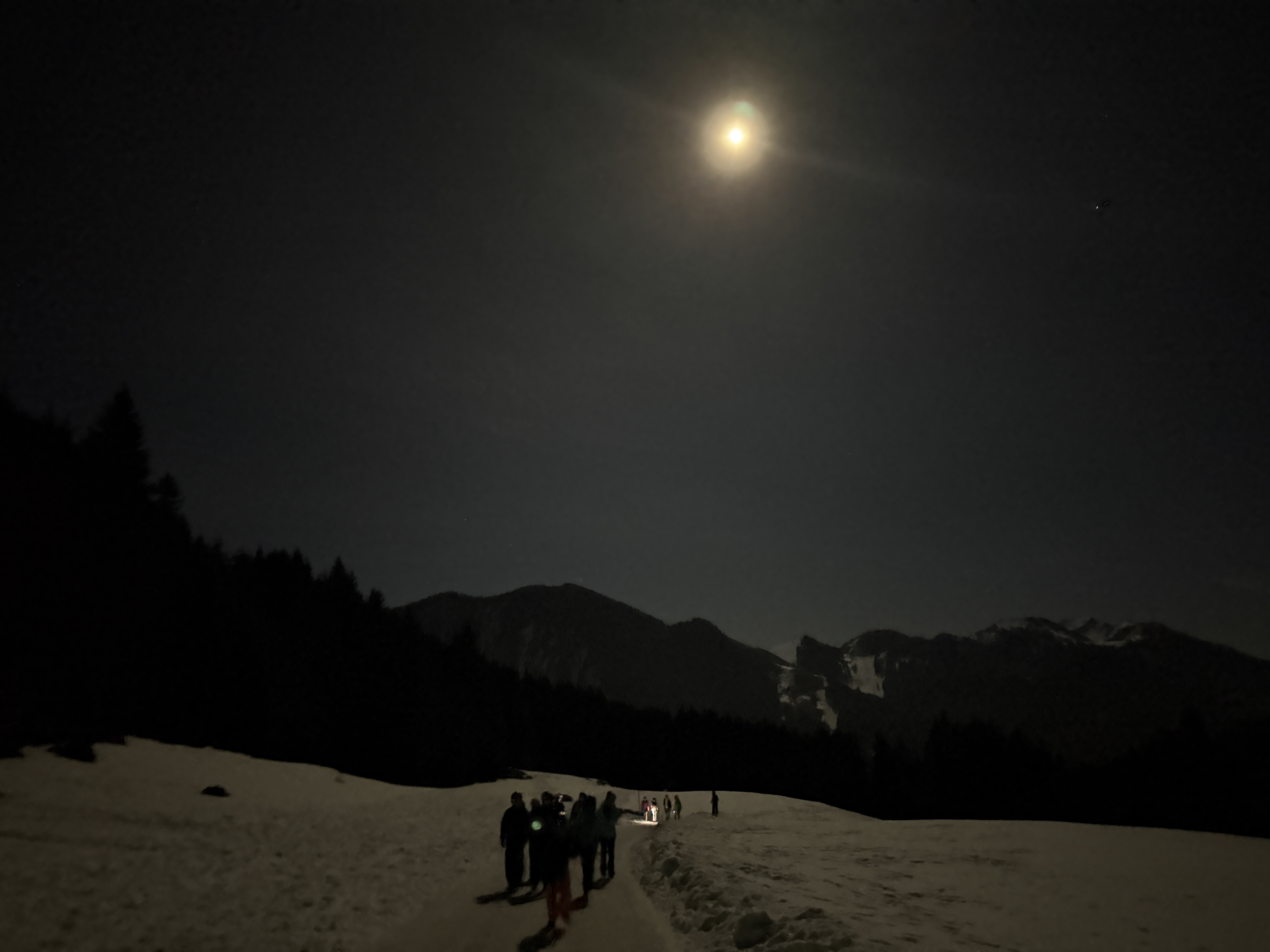 Am Montagabend hatten wir eine der seltenen Gelegenheiten zum Mondscheinrodeln und wir konnten uns davon überzeugen, dass die neueste Generation der Smartphones die Nacht tatsächlich zum Tag macht!