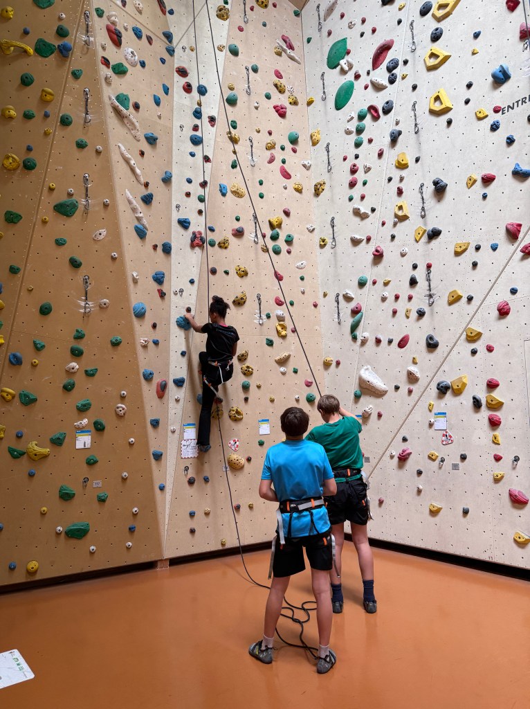 Nachdem wir uns in der Boulderhalle warm geklettert hatten, verbesserten wir unser Können im Toprope Sichern sowie Klettern und an den Autobelays. Einige bewiesen sogar ihr Können im Vorstiegsklettern.