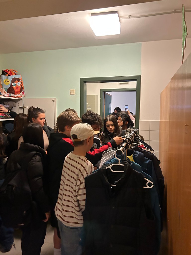 Seit letztem Schuljahr wird unser Kleiderkreisel von unserer engagierten Werkstudentin Mila Daskalova betreut. So sorgte sie mit viel Sorgfalt auch am 09. Mai 2025 dafür, dass die gespendeten Kleidungsstücke ordentlich sortiert wurden, damit unsere Schülerinnen und Schüler sich bei der Aktion schöne Sachen aussuchen konnten.