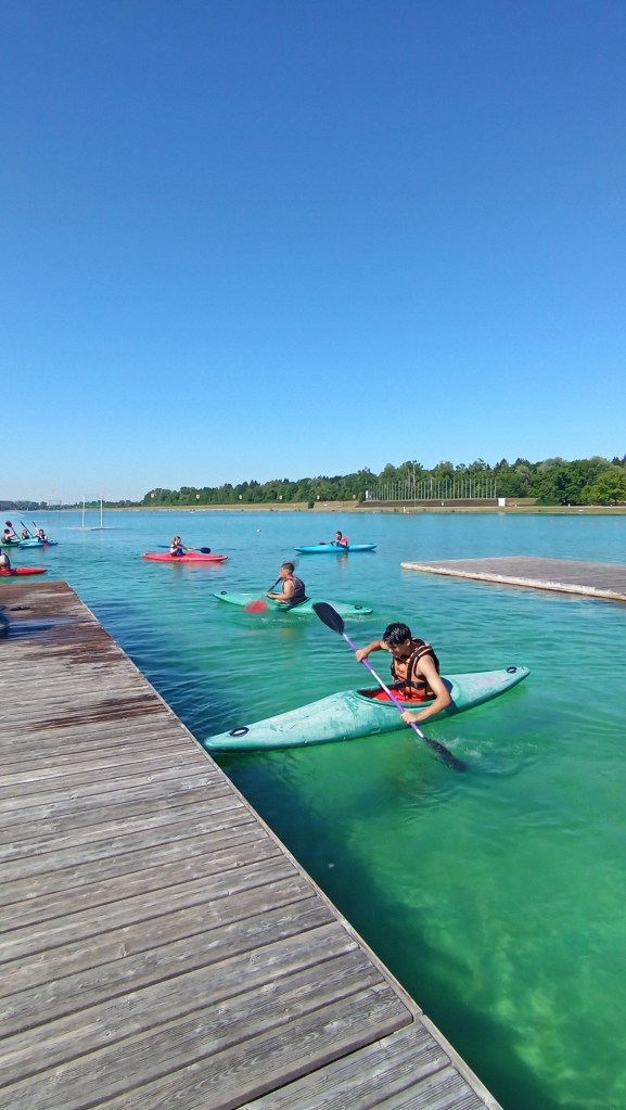 Bei strahlendem Sonnenschein und bestem Sommerwetter machte sich die Klasse 9b am 25. Juni 2025 auf den Weg zur Ruderregattastrecke in Oberschleißheim. Ein sportlicher Tag zusammen mit Herrn Wegmann und seinem Kajak-Kollegen Herrn Ott, der allen noch lange in Erinnerung bleiben wird.