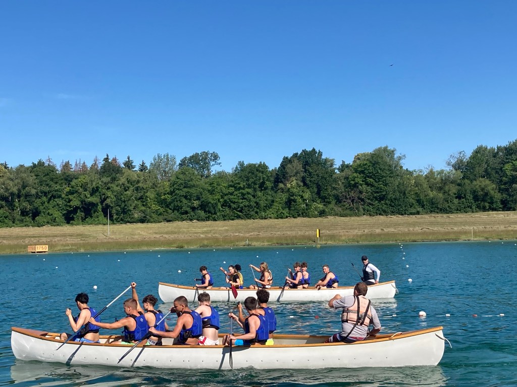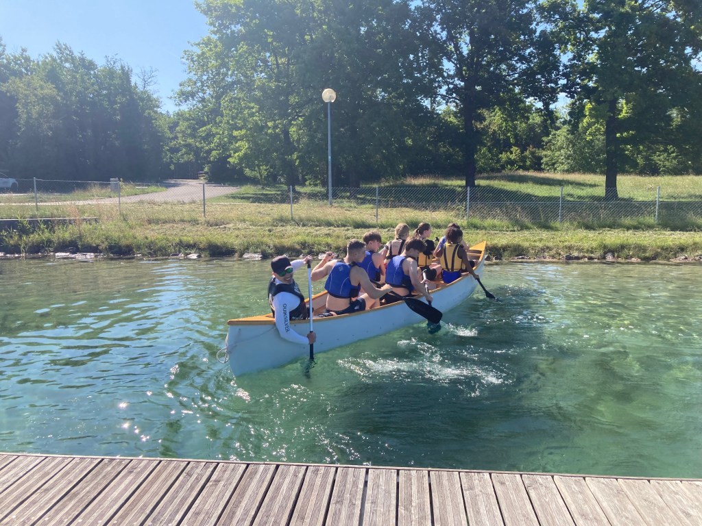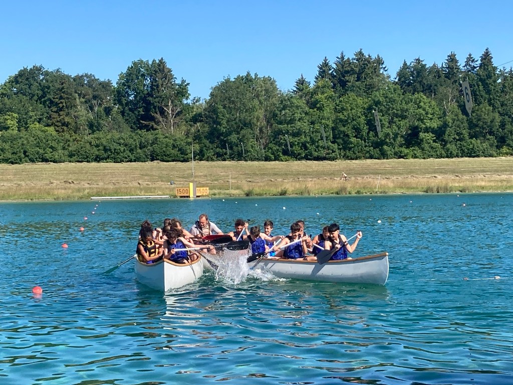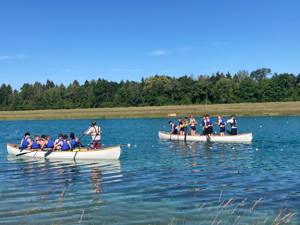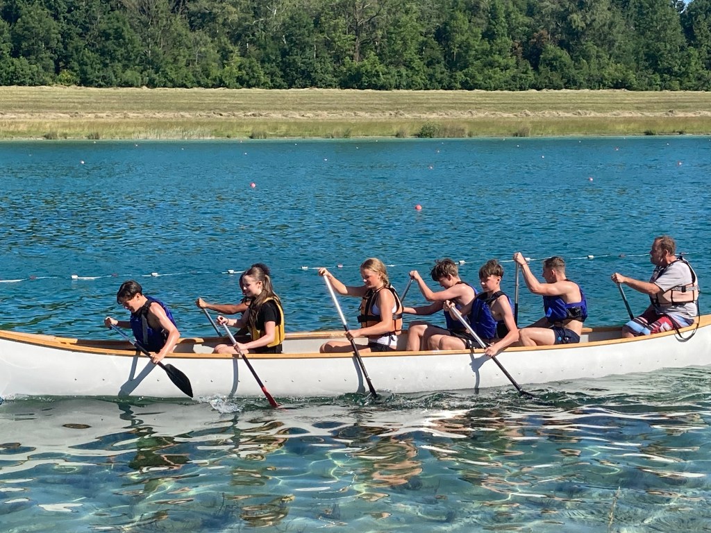 Sogar Herr Fürst ließ sich das Vergnügen nicht entgehen und ging direkt mit auf’s Wasser. Der Tag begann mit einer Fahrt in zwei 10er-Kanadiern, bei der sich die Schülerinnen und Schüler zunächst auf dem Wasser einpaddelten. Danach ging es direkt in spannende Wettrennen über, die nicht selten in wilden Wasserschlachten endeten, sobald sich die Boote zu nahe kamen.