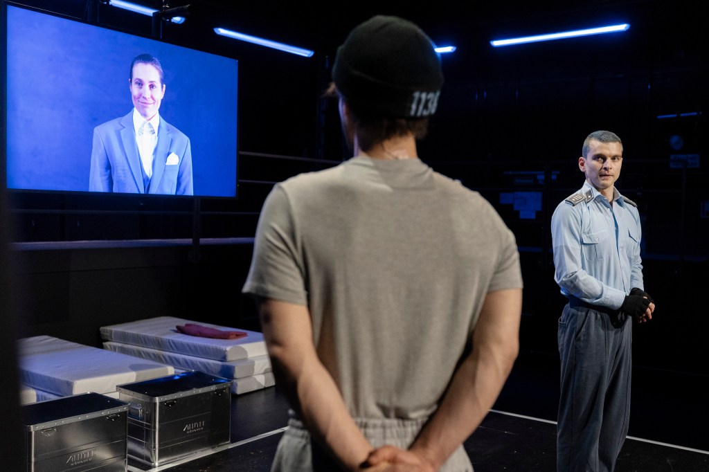 Durch den Einsatz von Kameras, social media Elementen und beklemmend wirkenden Lichteffekten wurden wir als Zuschauer in den Bann des konstruierten Stückes gezogen.