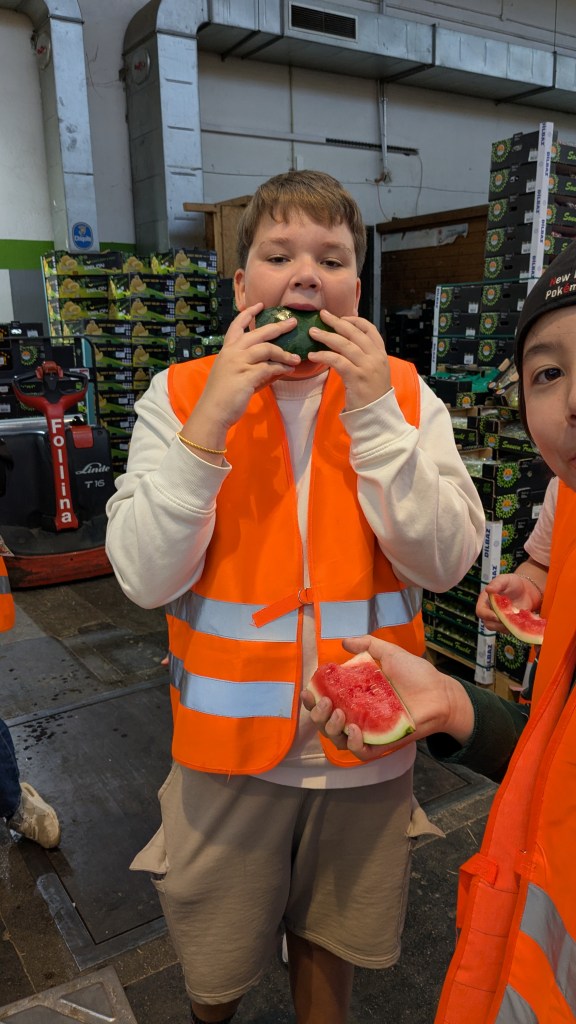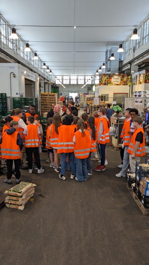 Die Klasse 6a traf sich am 15. Juli schon um 7:45 Uhr mit Frau Urban und Frau Emhofer in der Schule, weil sie die Großmarkthalle besuchen durfte. Die Exkursion erfolgte im Rahmen des Geographieunterrichts, wo Nahrungsmittel und ihre Herkunft ein wichtiges Thema in diesem Schuljahr waren.