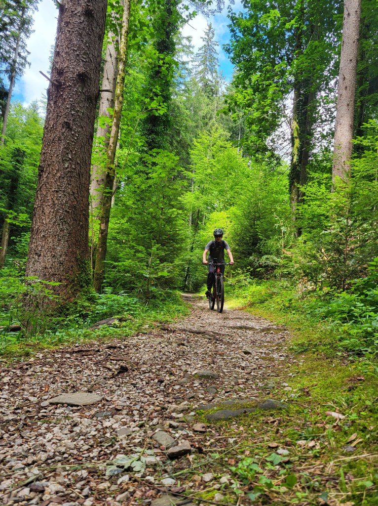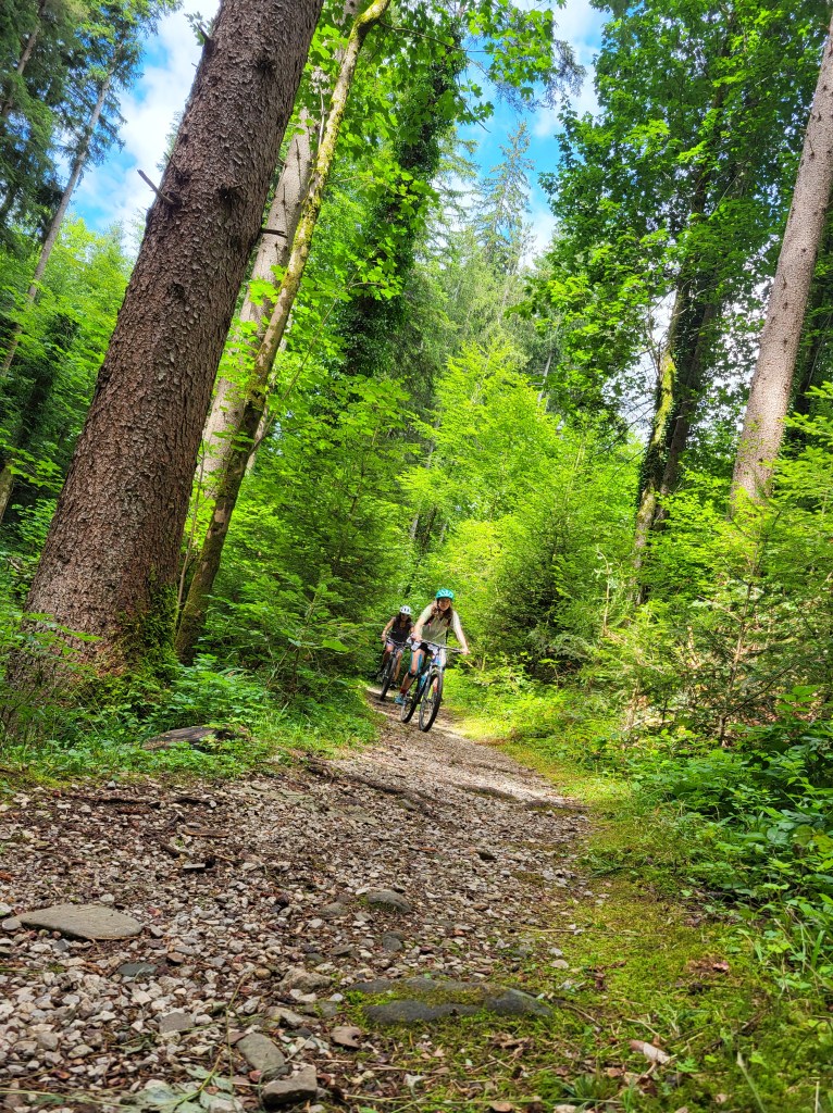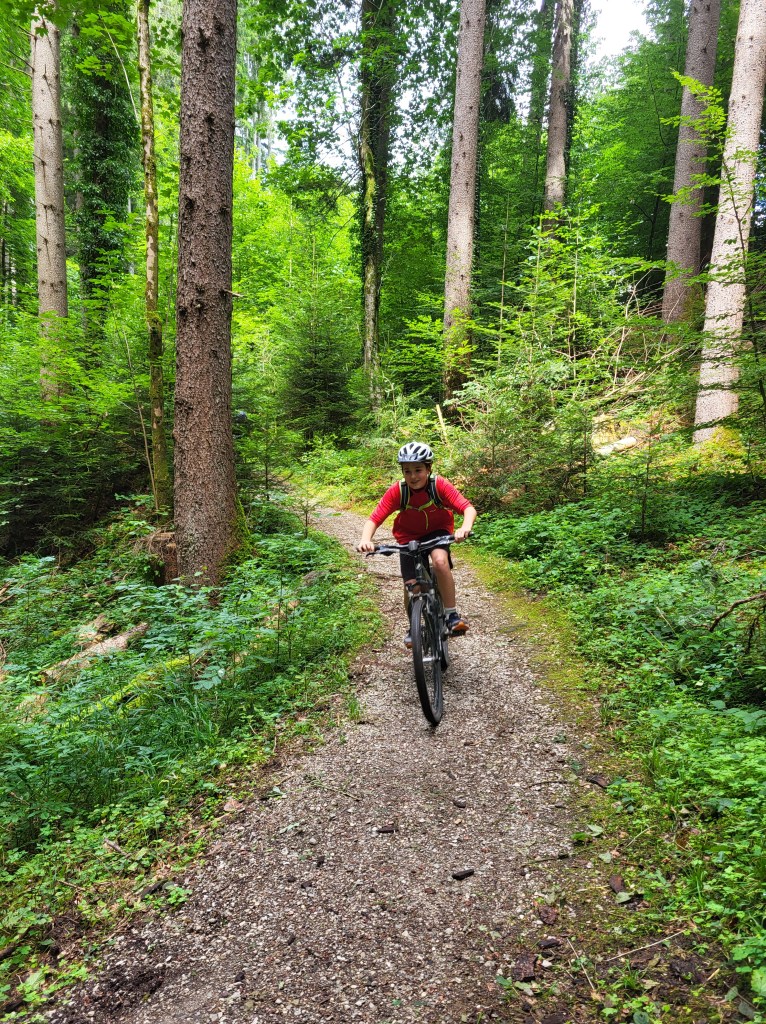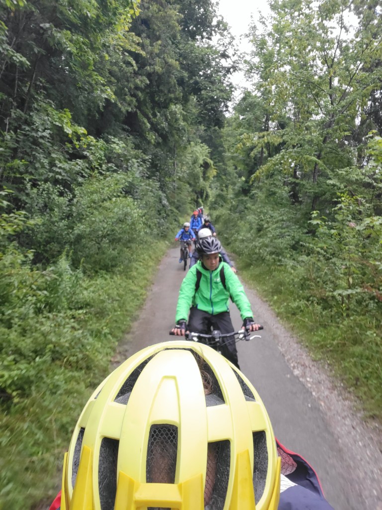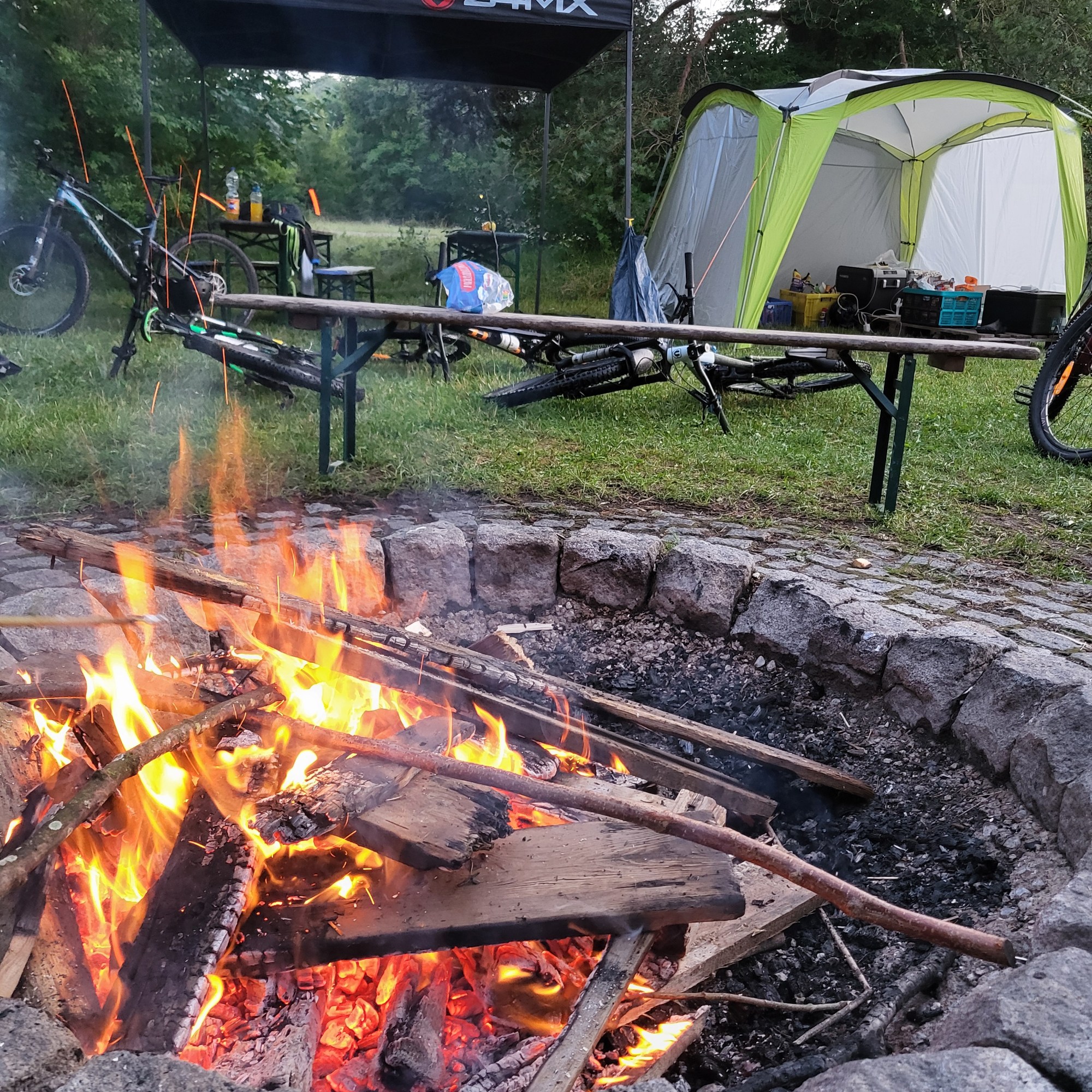 Nach einem erfrischenden Eis – gesponsert von der Familie Thierkötter – ging es noch einmal aufwärts. Den anstrengendsten Teil der Etappe meisterten alle Biker auf ihre eigene Art. Belohnt für die Strapazen wurden sie durch flowige Abfahrten auf Schotter und Asphalt, garniert mit immer wieder grandiosen Ausblicken auf den Peißenberg und das Alpenvorland. Das Abendessen bot Leckereien wie Wraps, Cevapcici, Salat u.a. Verschiedene Spiele wie Werwolf und das Erraten von Begriffen oder Personen sorgten für eine lustige und gemütliche Atmosphäre am selbstentfachten Lagerfeuer.