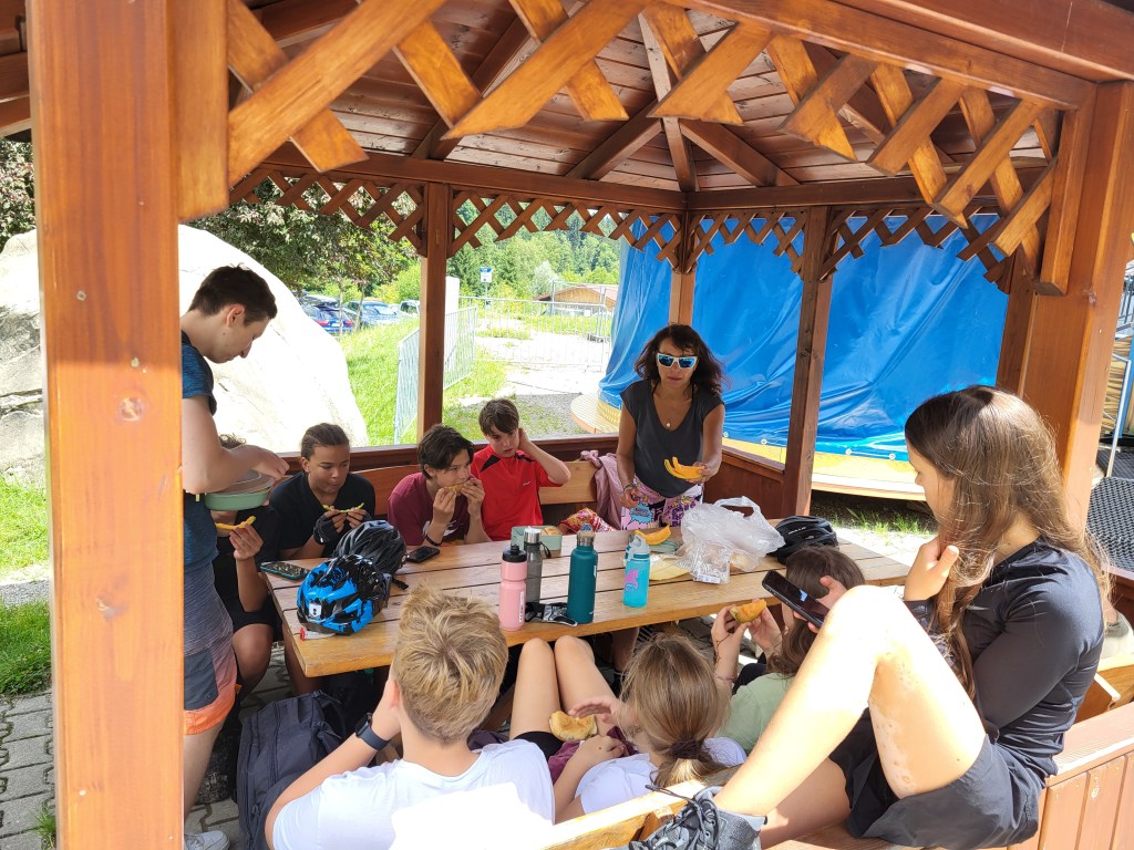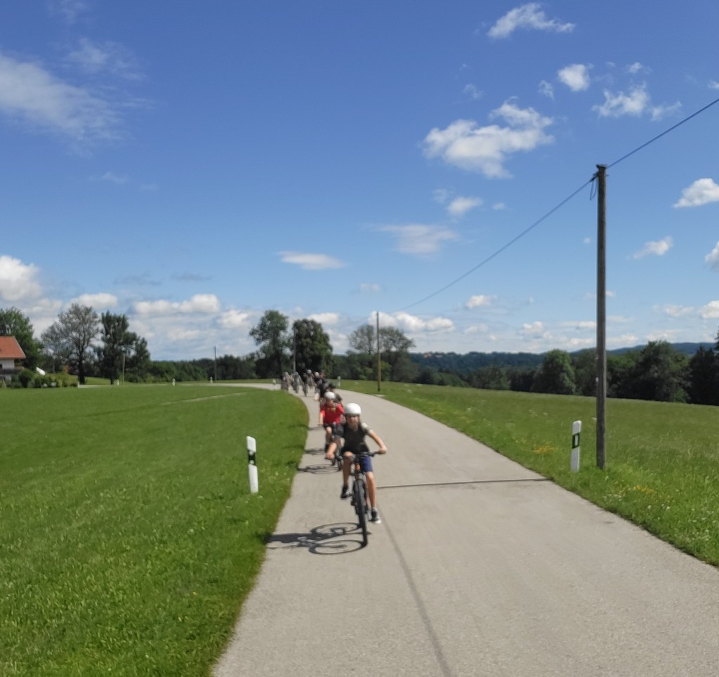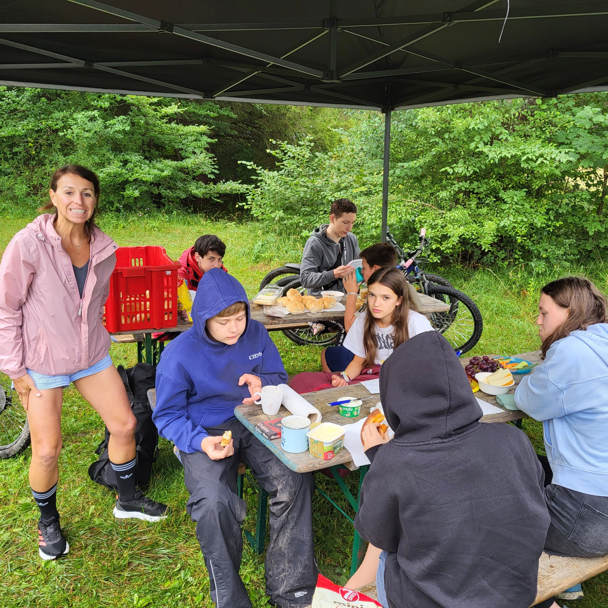 Eigentlich sollte es Ende Juli stabiles Wetter mit wenig Niederschlag und Wolken geben. Unsere Wettervorhersage zeigte leider etwas anderes. Doch wir ließen uns davon nicht entmutigen. Mit einer längeren Packliste und der Organisationsarbeit unserer beiden Lehrkräften Frau Milano und Herrn Wegmann, den fleißigen Händen von Familie Wegmann sowie der riesigen Obst- und Gemüseverpflegung der Firma Gessler konnten wir uns am Montag gegen 10 Uhr auf die Räder schwingen.