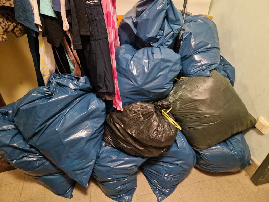 - Saubere, tragbare Textilien, die in einem guten Zustand sind und sich weiterverwenden oder recyceln lassen, in geschlossenen Mülltüten!