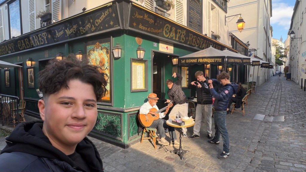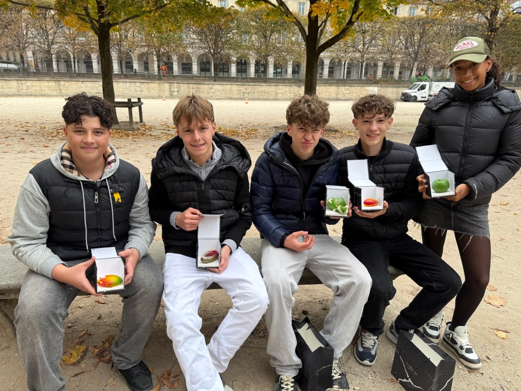 Ein echtes Highlight: Der Besuch beim TikTok-Star-Patissier Cédric Grolet! Während andere stundenlang in der Schlange standen, zogen unsere cleveren Kids mit Online-Vorbestellung einfach vorbei. Die neidischen Blicke der Wartenden waren unbezahlbar, genauso wie die Teilchen von Cédric Grolet. Eine seiner kunstvoll gestalteten, süßen „Früchte“ kostet übrigens stolze 18,00 € – aber laut unseren Schülerinnen und Schülern ist der Geschmack jeden Cent wert!