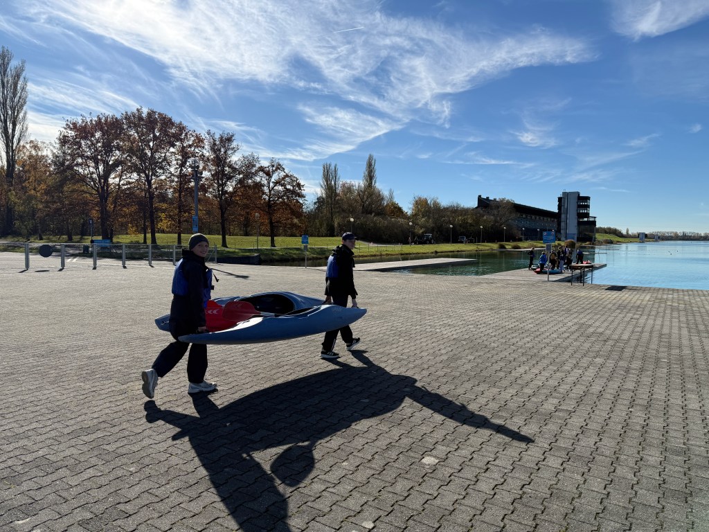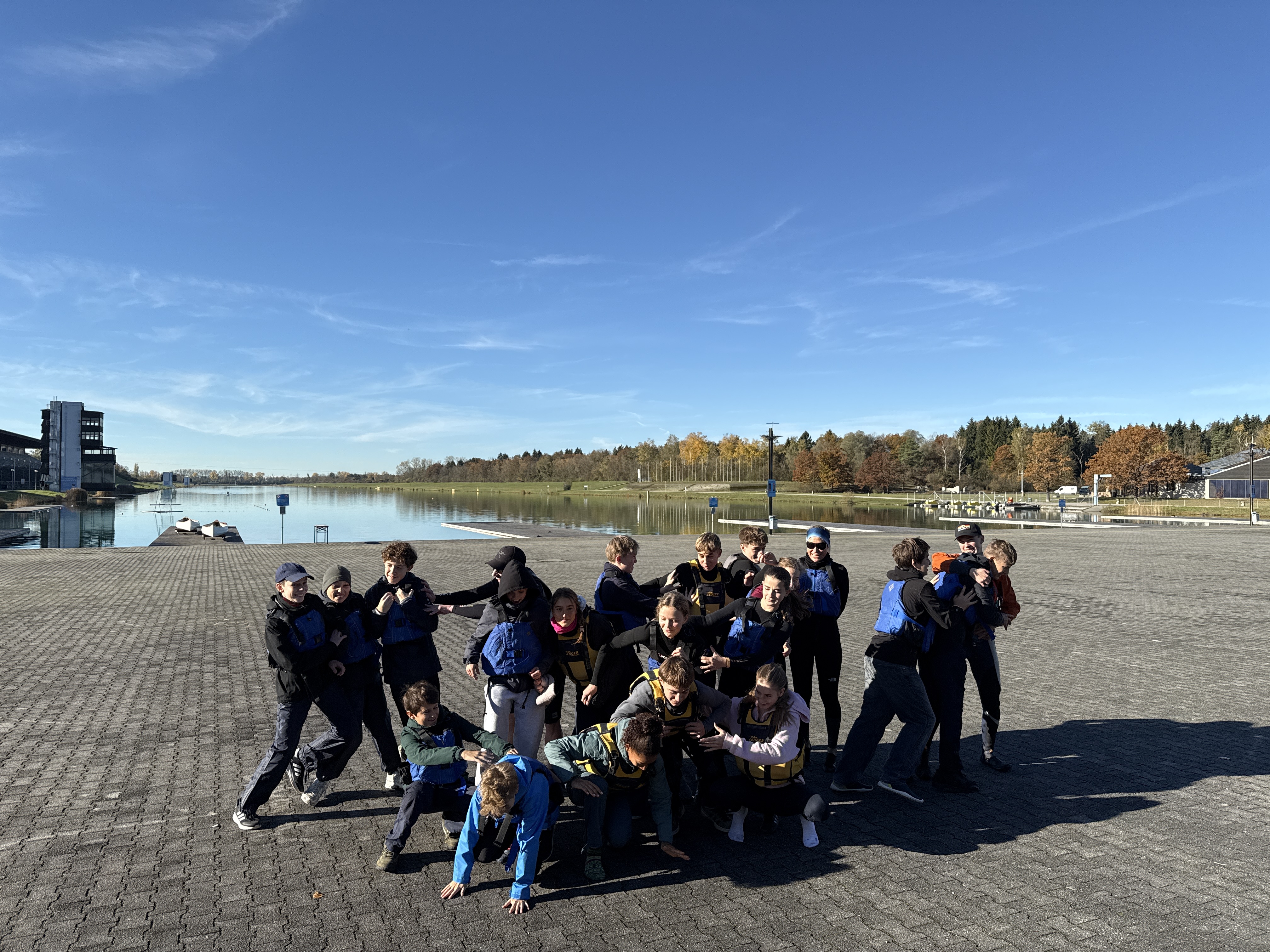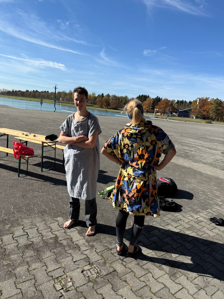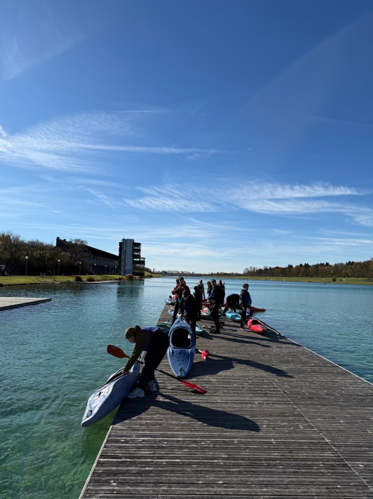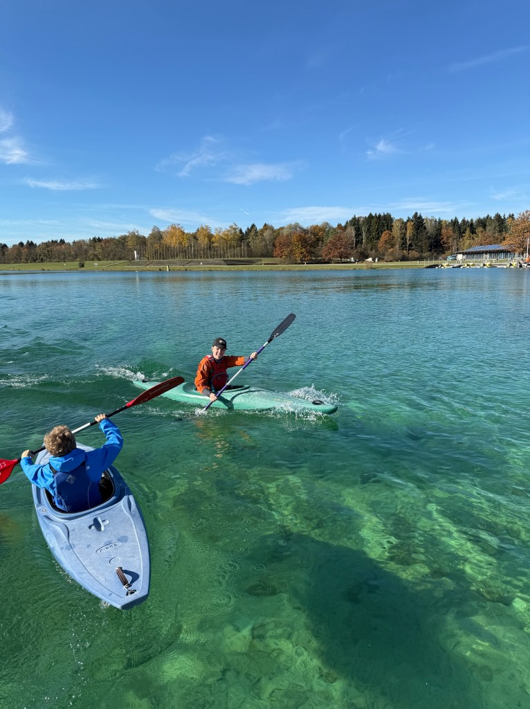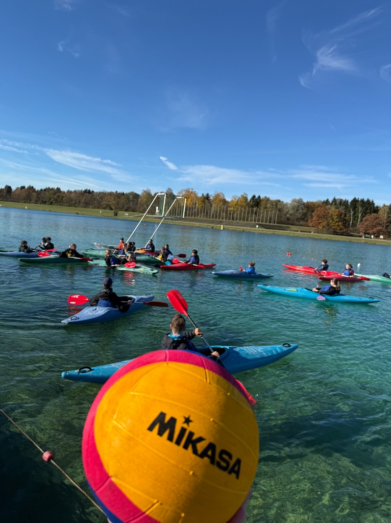Bei strahlendem Sonnenschein, aber mit bibberkalten Wassertemperaturen, machte sich die Outdoor-AG am Mittwoch, den 29. Oktober 2025, auf den Weg zur Ruderregattastrecke nach Oberschleißheim. Während andere um diese Jahreszeit vielleicht lieber Tee trinken und Kastanien sammeln, wagten sich die mutigen Schülerinnen und Schüler, bestens ausgestattet mit Wechselklamotten und teils sogar Neoprenanzügen, aufs Wasser.