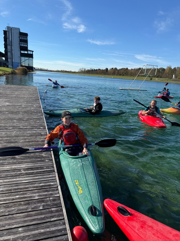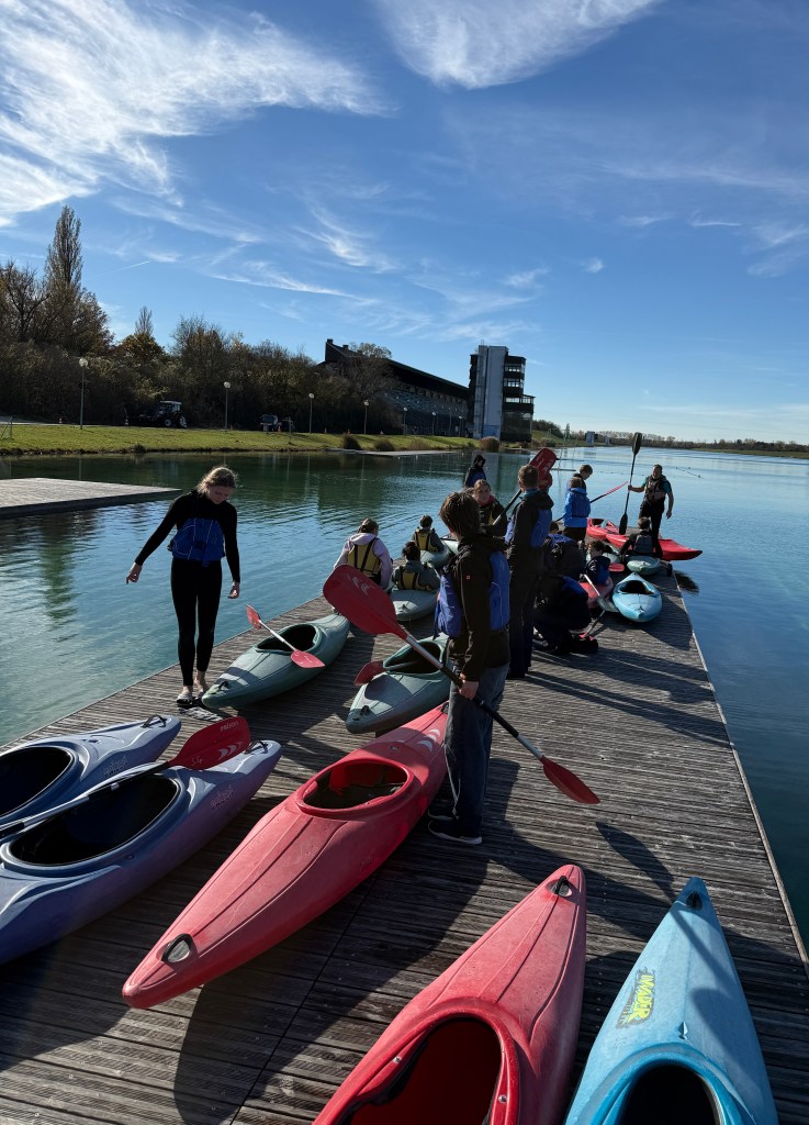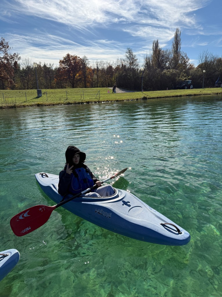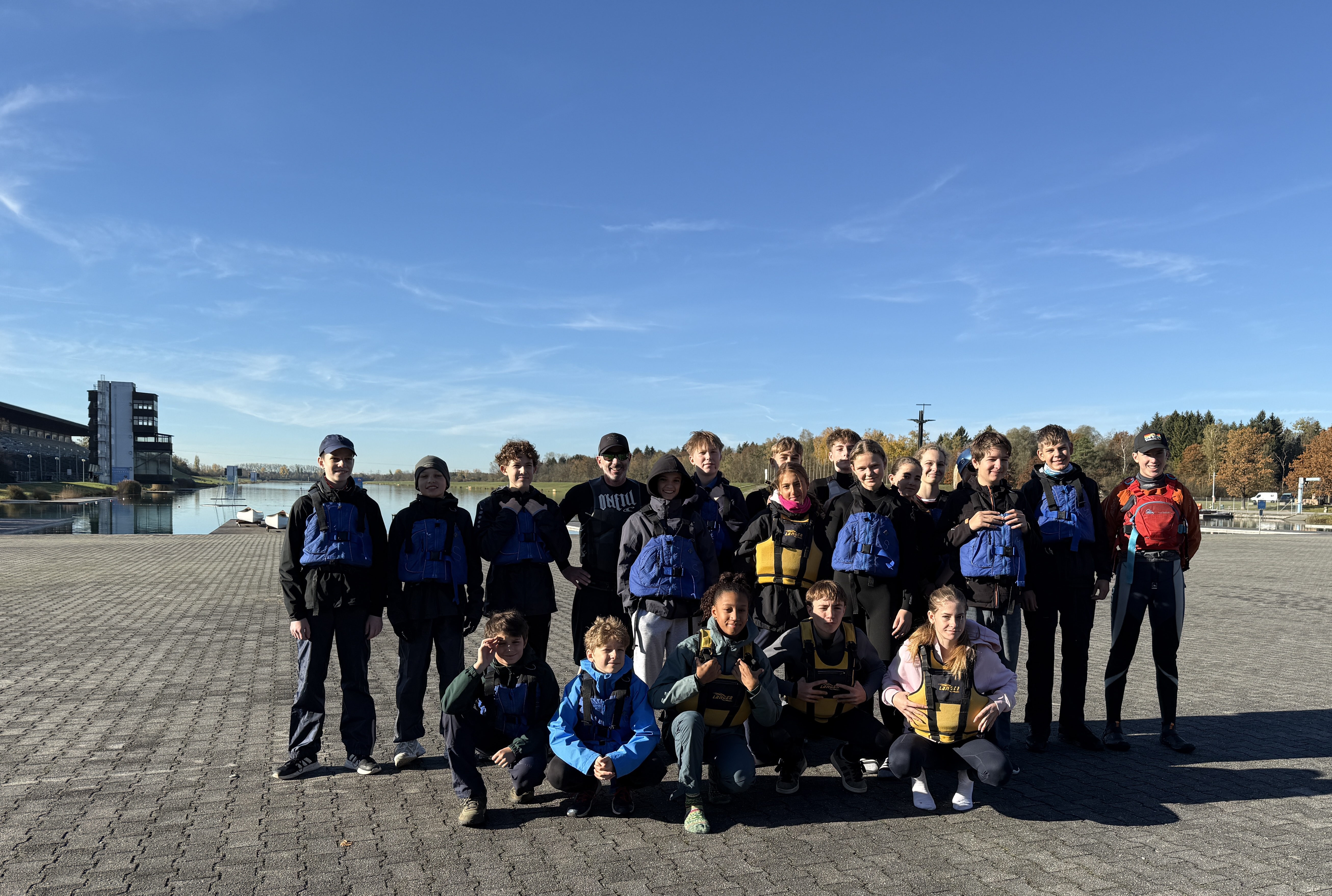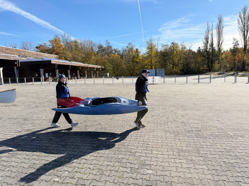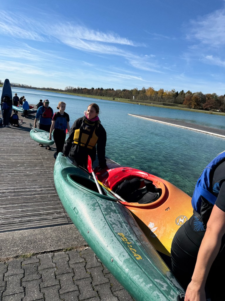 Bei strahlendem Sonnenschein, aber mit bibberkalten Wassertemperaturen, machte sich die Outdoor-AG am Mittwoch, den 29. Oktober 2025, auf den Weg zur Ruderregattastrecke nach Oberschleißheim. Während andere um diese Jahreszeit vielleicht lieber Tee trinken und Kastanien sammeln, wagten sich die mutigen Schülerinnen und Schüler, bestens ausgestattet mit Wechselklamotten und teils sogar Neoprenanzügen, aufs Wasser.