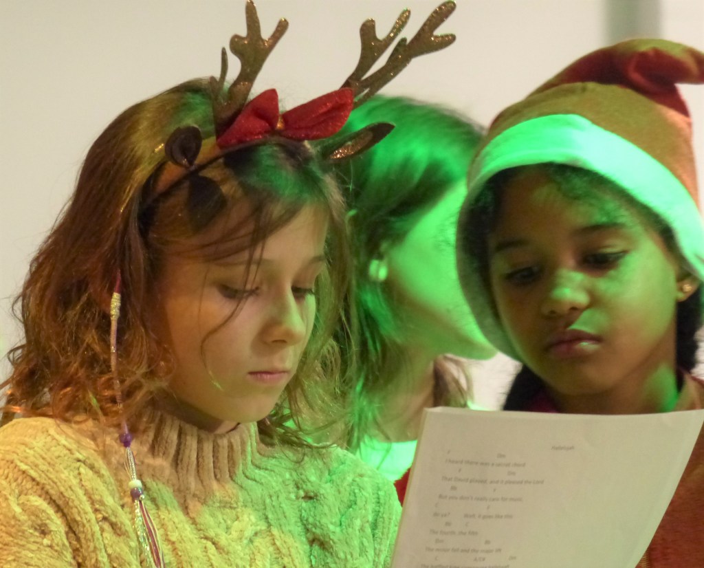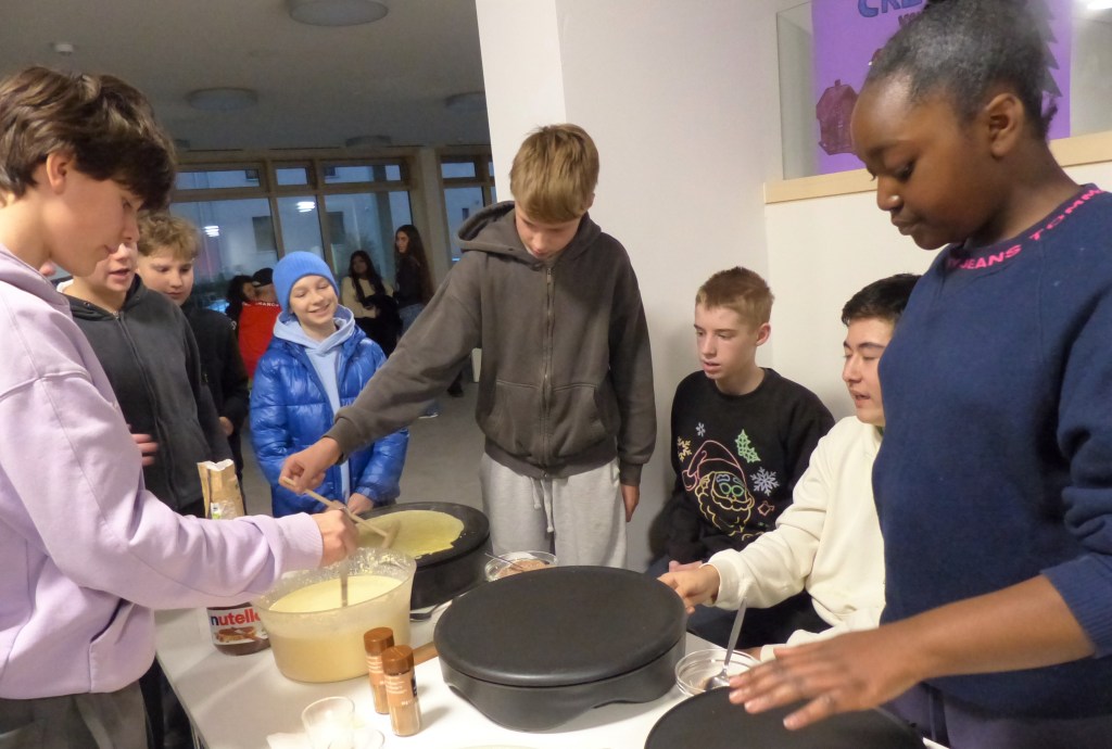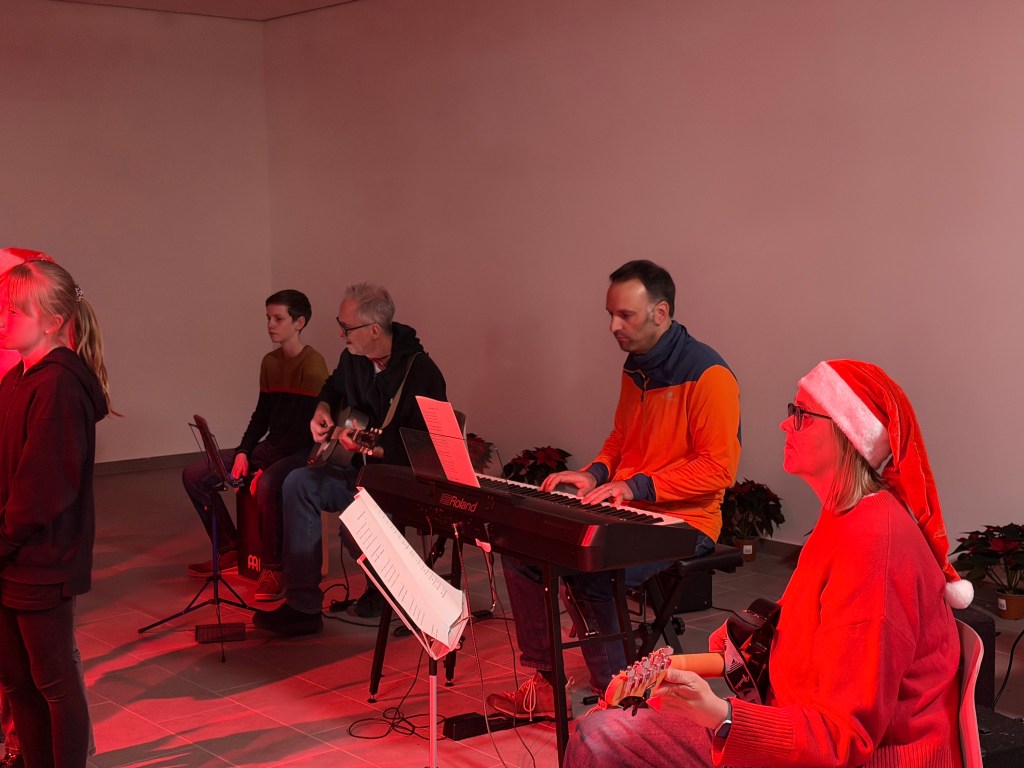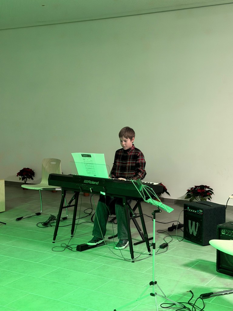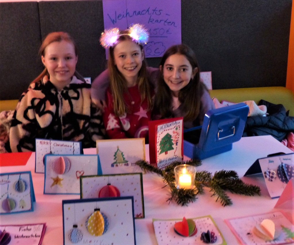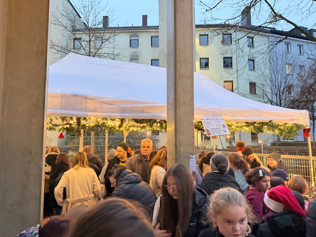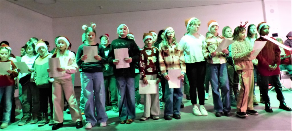 Für den musikalischen Auftakt sorgten die Fünftklässler unter der Leitung von Frau Bundle und Frau Fontaine. Begleitet von der Schulband präsentierten sie ein Medley internationaler Weihnachtslieder und bereiteten damit den passenden Rahmen für das bunte Markttreiben.