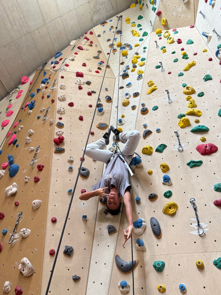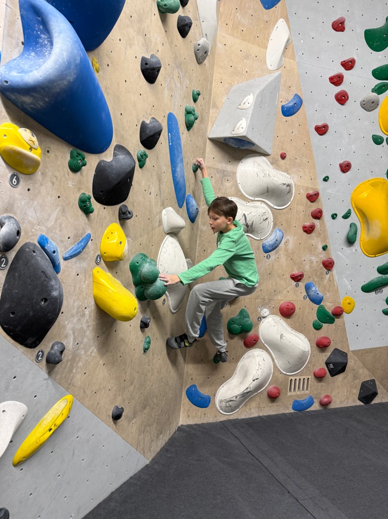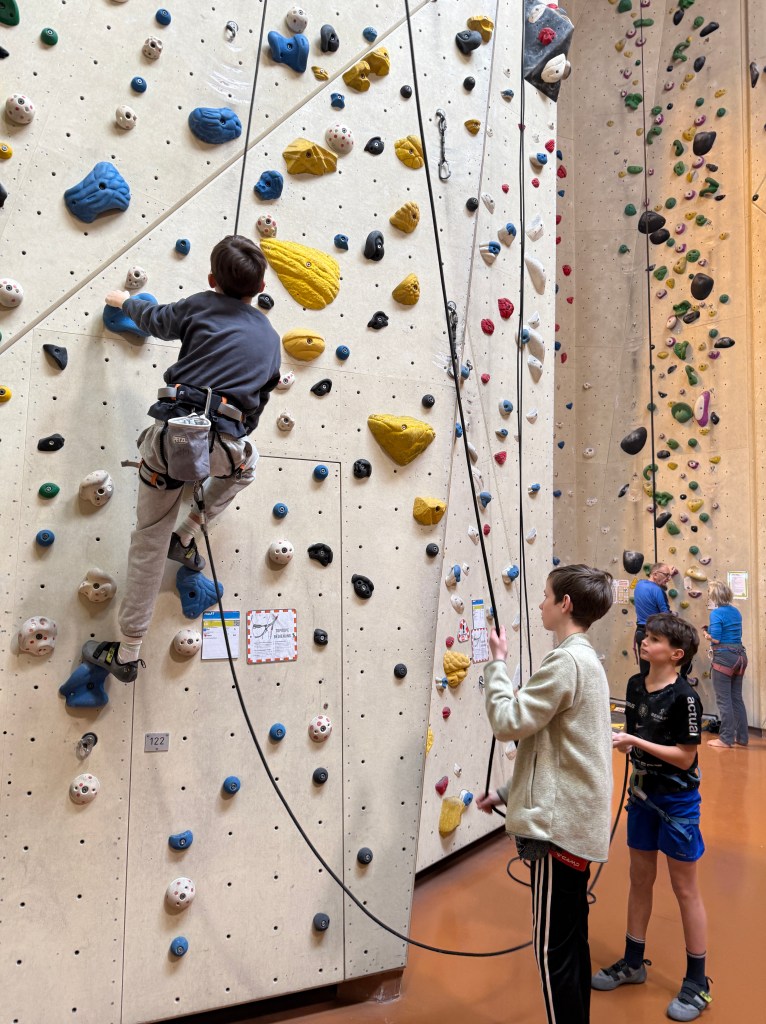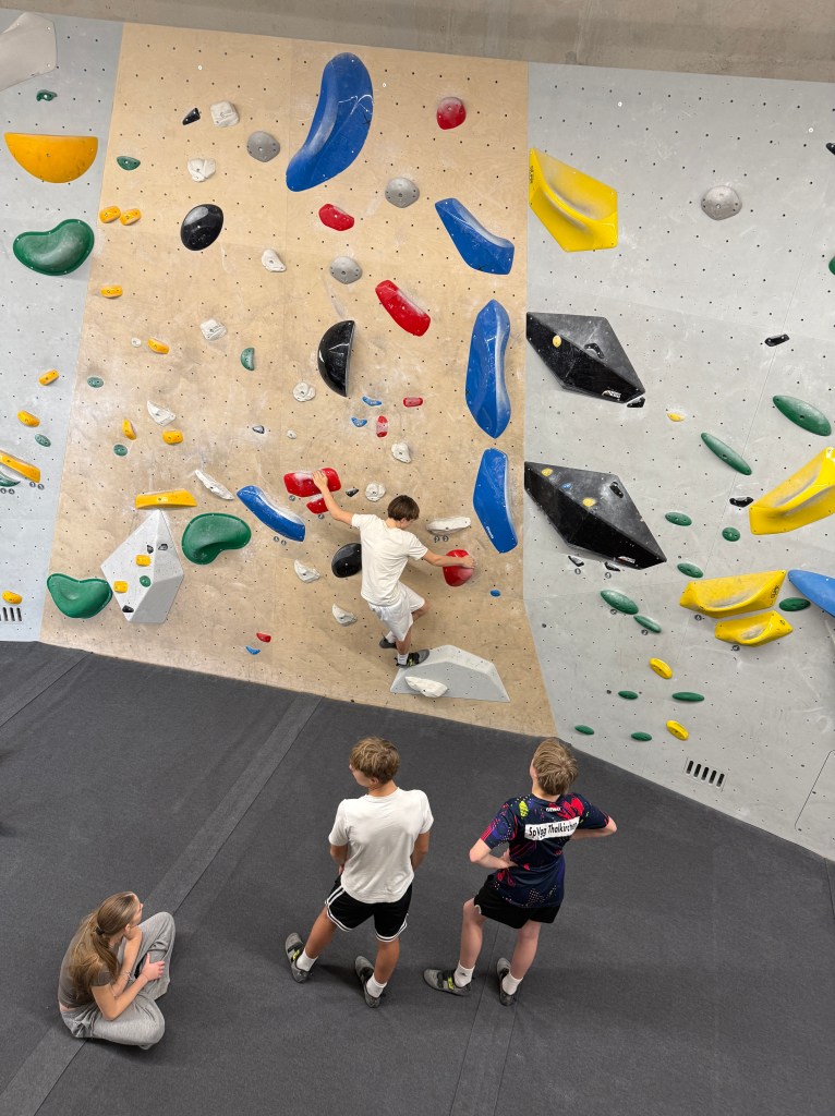 Anschließend wechselten wir in die Seilkletterbereiche. Dort vertieften die Kids ihre Fähigkeiten im Toprope-Klettern und -Sichern sowie an den Autobelay-Routen. Besonders beeindruckend war, wie routiniert und verantwortungsbewusst viele bereits agierten: Einige sicherten sich sogar selbstständig im Vorstieg, selbstverständlich mit geschultem Blick auf die Sicherheitsregeln. Denn auch an diesem Tag galt wieder ganz klar: Safety first!