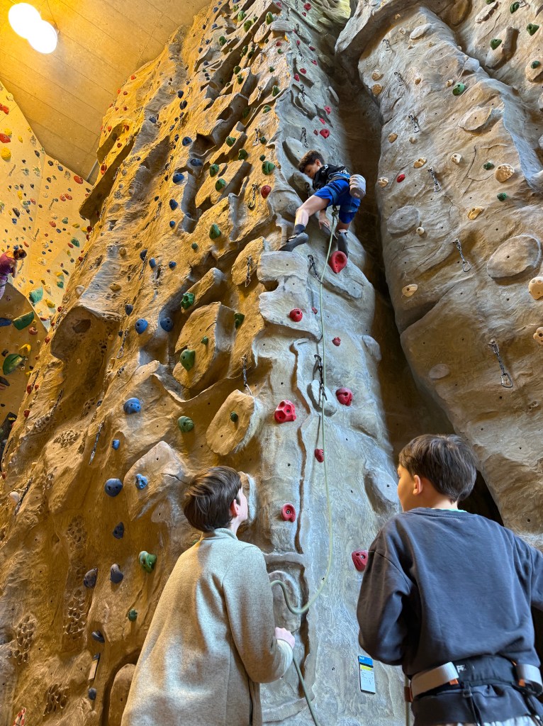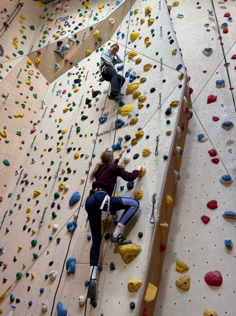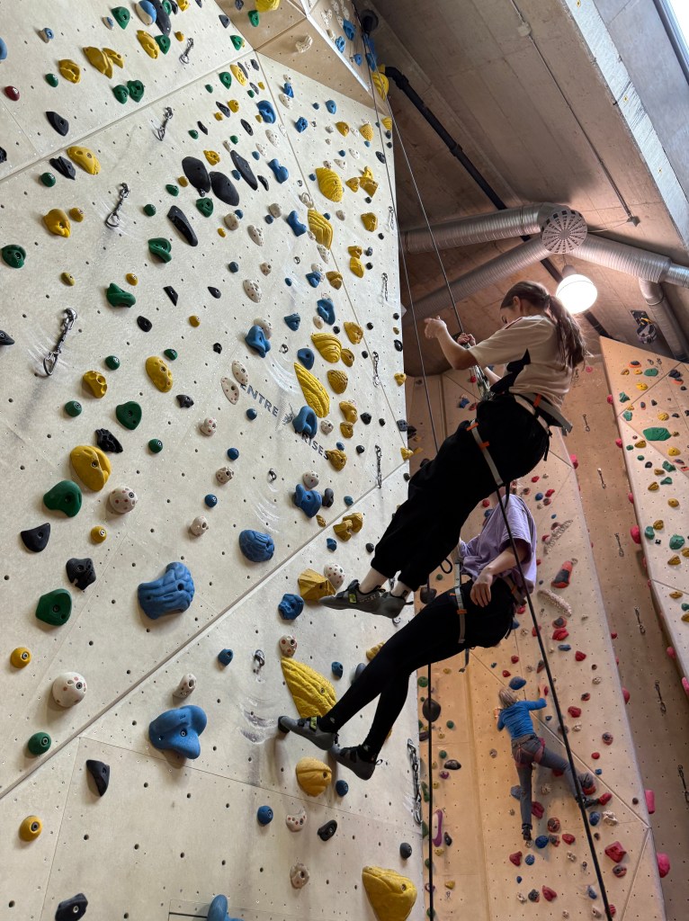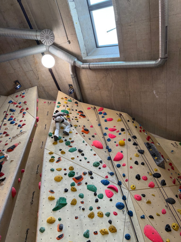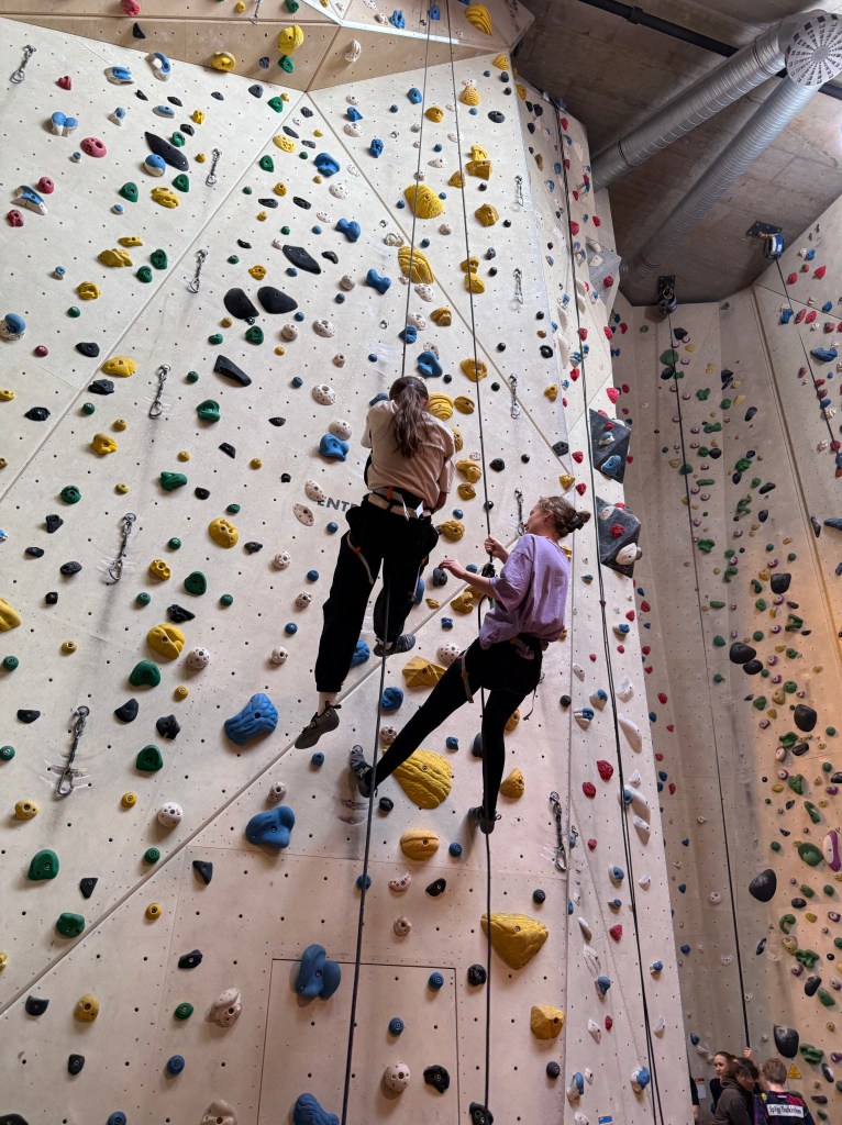 Anschließend wechselten wir in die Seilkletterbereiche. Dort vertieften die Kids ihre Fähigkeiten im Toprope-Klettern und -Sichern sowie an den Autobelay-Routen. Besonders beeindruckend war, wie routiniert und verantwortungsbewusst viele bereits agierten: Einige sicherten sich sogar selbstständig im Vorstieg, selbstverständlich mit geschultem Blick auf die Sicherheitsregeln. Denn auch an diesem Tag galt wieder ganz klar: Safety first!