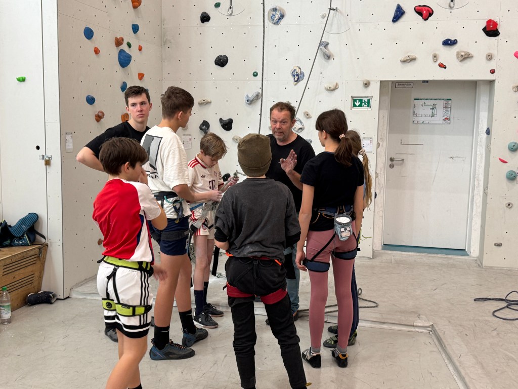 Auch in dieser Spezialdisziplin zeigten alle Teilnehmerinnen und Teilnehmer sensationell starke Leistungen. Doch die größte Leistung am ersten Termin war nicht die Höhe und die Schwierigkeitsgrade an der Wand – sondern das gute Miteinander, die Teamfähigkeit und die tolle Stimmung. Ein perfekter Start für unsere neue KletterAG!